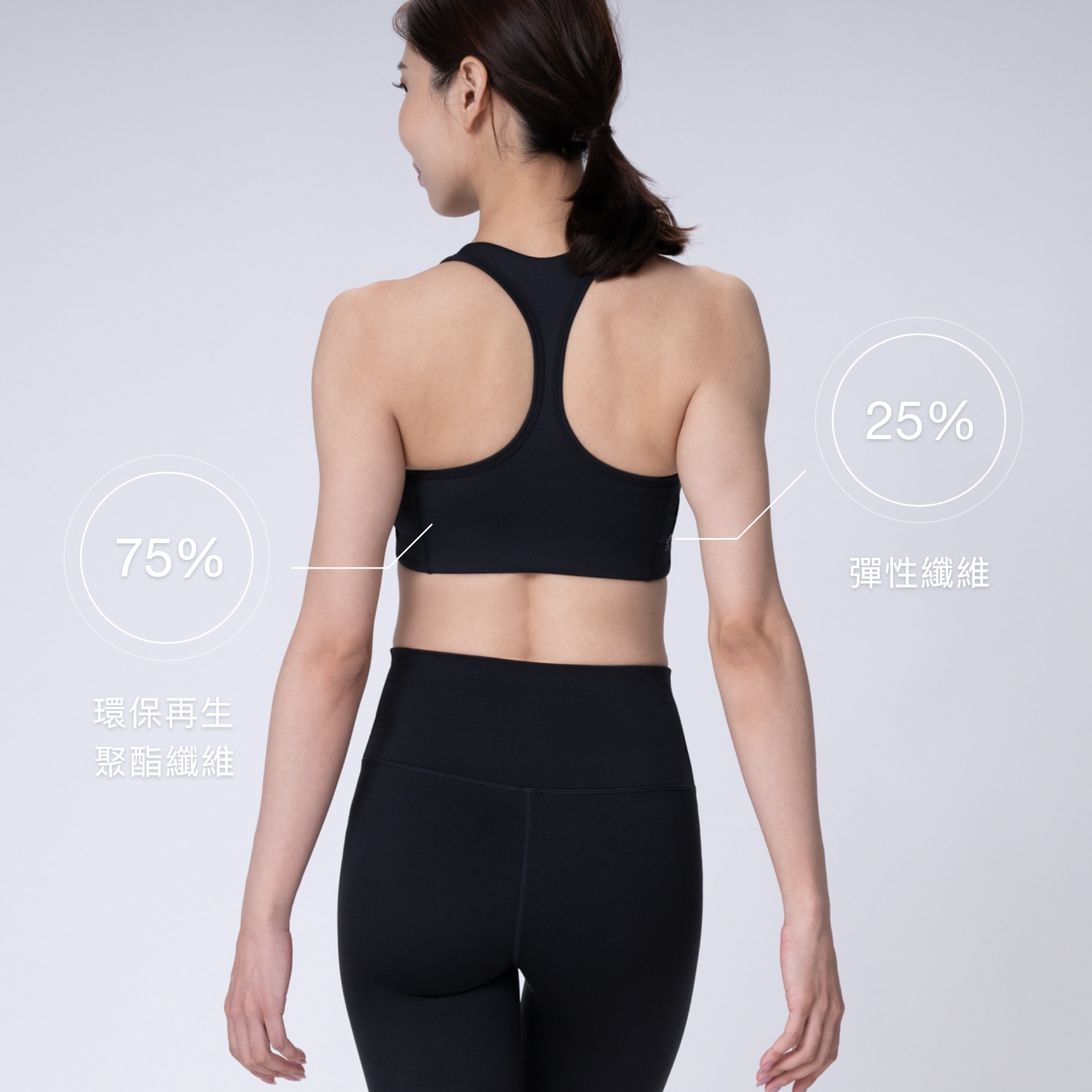 使用75%環保再生聚酯纖維和25%彈性纖維製成,從紗線到成衣,全程台灣製造,確保最佳的吸濕排汗性能。
