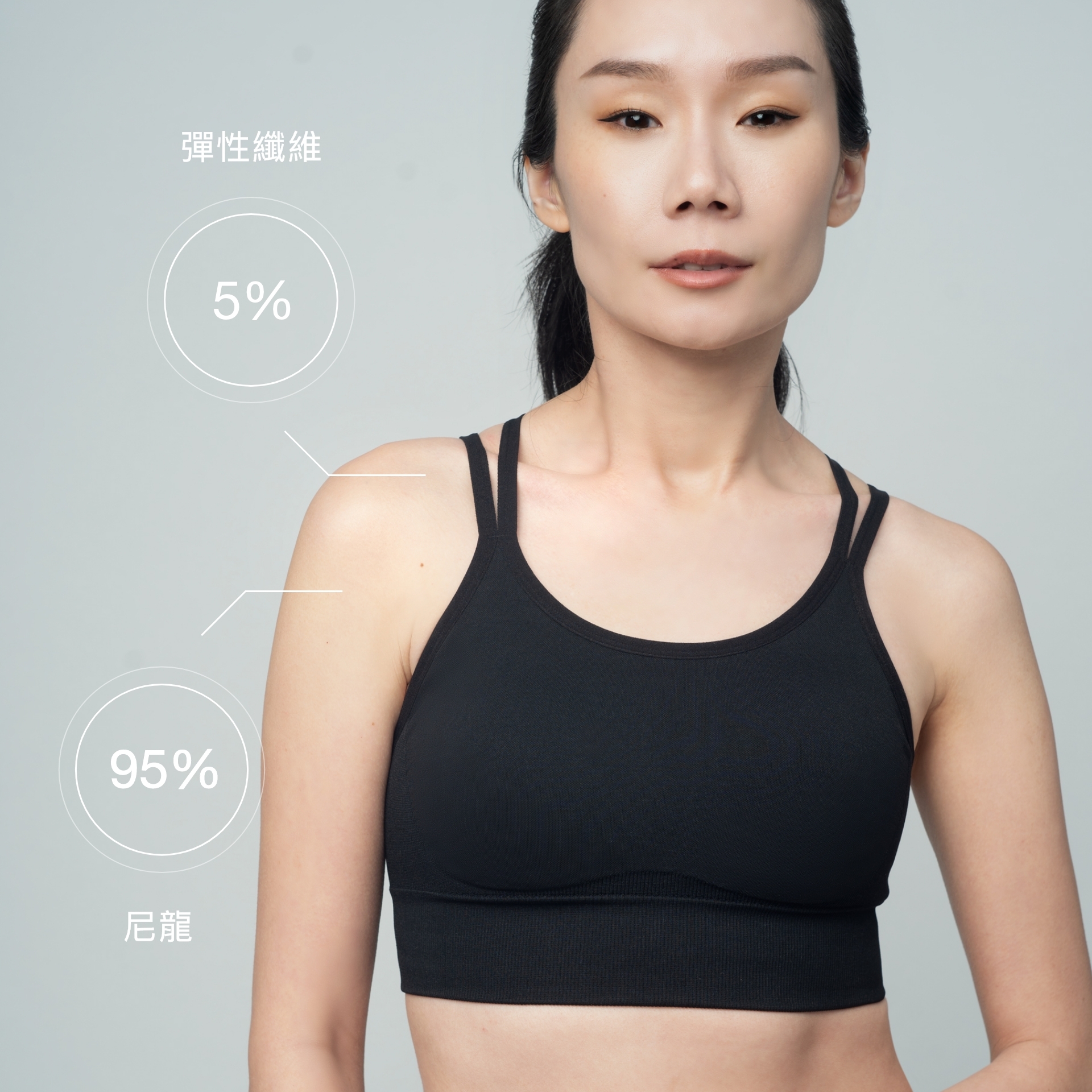 雙線細肩帶提供絕佳的支撐度,側開口可拆式襯墊,後背交叉設計。